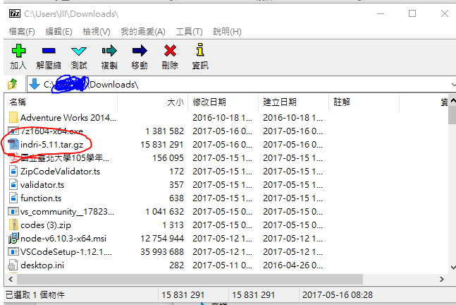 unzip: The tool I use is 7-zip. To be mentioned, it is recommended to open 7-zip first and use browser in 7-zip to change your directory to where you download Indri and then unzip it.
