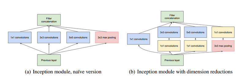 - (b) 則參考Inception的實作方法,將每個通道中的第三層卷積層拿掉,並直接將每一通道中的4個channel的feature map疊合(concatenate)在一起,便成為一個128channel的feature map,最後通過256個1x1x128 filter的卷積層,把feature map調整到輸出所需要的channel數。由於原本在32個通道都有256個1x1x4的filter,調整後則直接對concatenate後的feature maps使用256個1x1x128的filter,因此實作意義並沒有發生變化。