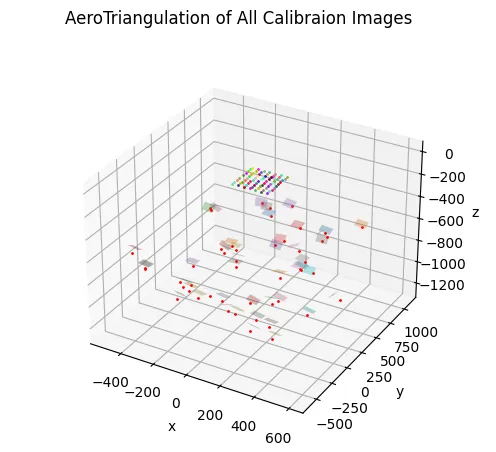 可以參考我的Github Repo CamCalibration,裡面有提供測試用的圖片,clone下來就可以直接跑,主要是透過校正板與OpenCV,計算出相機的畸變參數、內方位參數與外方位參數,並將每一張相片所在的位置與旋轉角畫出來。